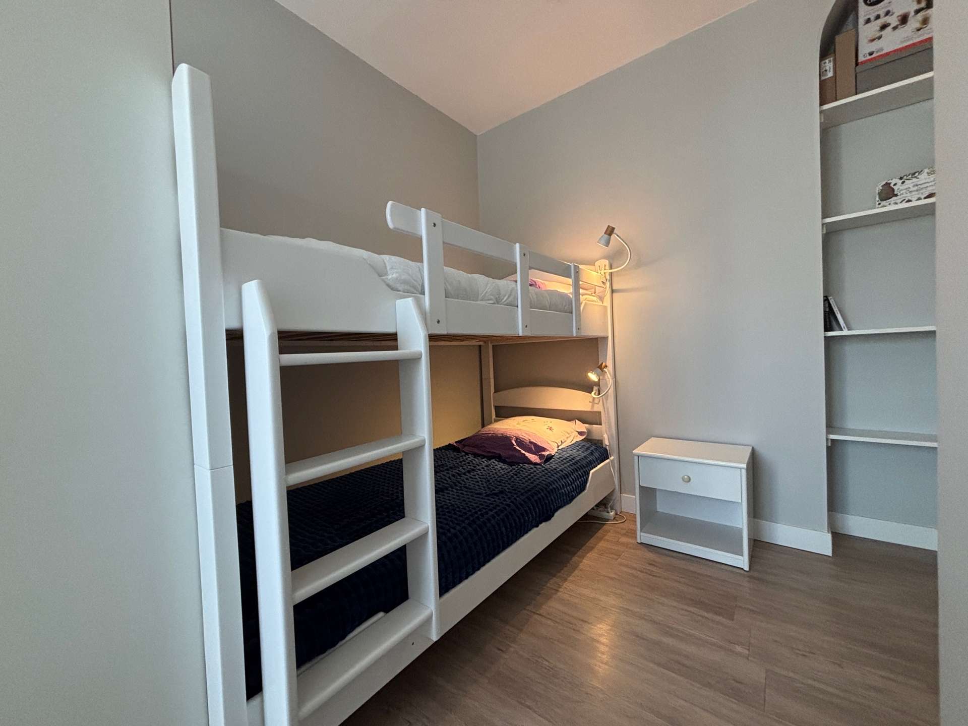 Aussi, vous serez séduit par deux chambres spacieuses l'une avec deux lits superposés pour une personne et un coin détente, l'autre avec un lit pour 2 personnes, une armoire, deux chevets et deux lampes.